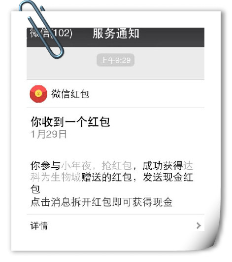 點擊領取服務通知,拆開紅包到微信錢包即可。