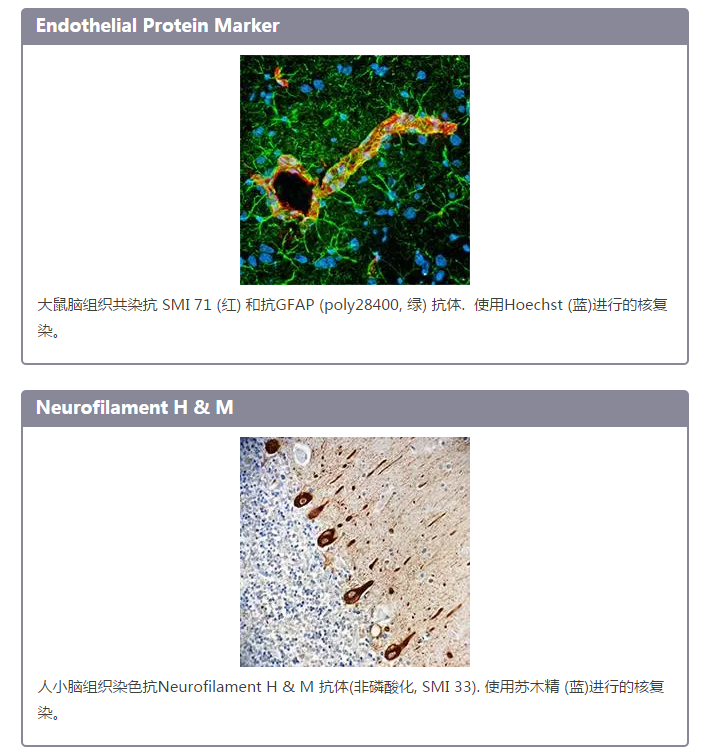 SMI?克隆號系列抗體是BioLegend 旗下品牌 Covance非常重要而知名的產(chǎn)品線,被業(yè)內(nèi)譽為研究神經(jīng)細胞特異marker的金標準。