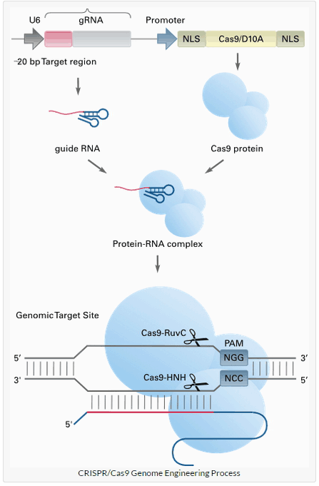CRISPR/Cas9是近幾年發(fā)展起來的基因編輯技術(shù),彌補(bǔ)了傳統(tǒng)基因編輯技術(shù)的諸多不足。Cas9蛋白可以在20nt左右的向?qū)NA介導(dǎo)下切割特定的基因組位點(diǎn),而且?guī)缀蹩梢栽谌魏挝恢冒l(fā)揮作用。只要稍加改造,就可以應(yīng)用于基因表達(dá)調(diào)控、表觀基因組修飾及活體成像領(lǐng)域。