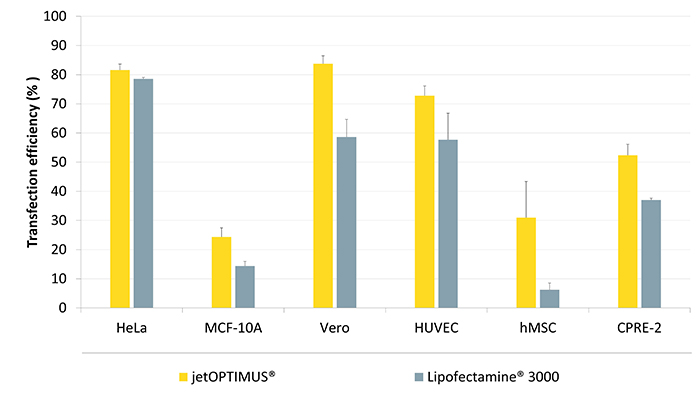 今天的主角jetOPTIMUS?是款陽(yáng)離子聚合物轉(zhuǎn)染試劑,因改善了其內(nèi)化效力和內(nèi)體逃逸的能力,特別適合難轉(zhuǎn)貼壁細(xì)胞的DNA轉(zhuǎn)染。