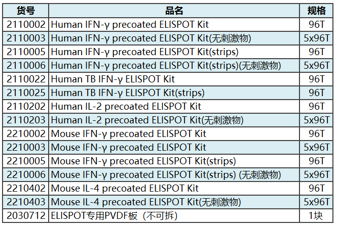 達(dá)優(yōu)? ELISPOT產(chǎn)品列表