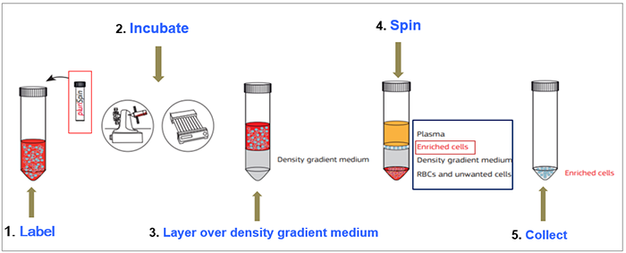 針對少量全血樣本通過淋分液分離PBMC時細胞損失太多或分離效果不好時,這里給大家分享pluriSelect另一口碑不錯用于全血樣本的富集和耗竭產(chǎn)品,只需要1ml全血樣本與對應指標的產(chǎn)品按照一定的體積比孵育,然后進行break off離心方式就可以達到對應初步的細胞富集和耗竭效果。能保證了后續(xù)要研究細胞的得率和純度,同時獲得的細胞純凈不帶磁珠。適合的樣本類型包括:PBMC, Buffy Coat, Cord Blood, Bone Marrow, Primary Cell Solution。原理非常簡單實用也讓小編腦洞大開。