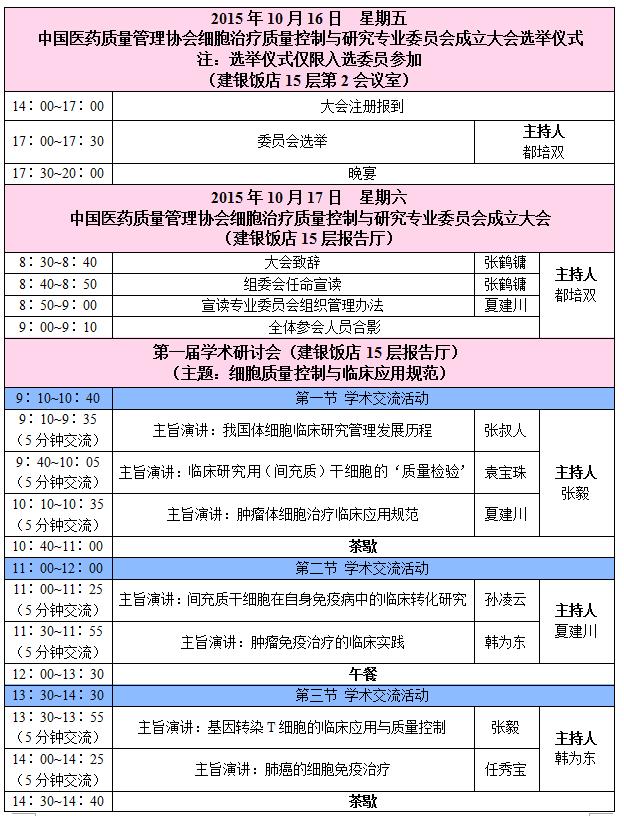 由中國(guó)醫(yī)藥質(zhì)量管理協(xié)會(huì)細(xì)胞治療質(zhì)量控制與研究專(zhuān)業(yè)委員會(huì)(籌)主辦、中山大學(xué)附屬腫瘤醫(yī)院、鄭州大學(xué)一附院、拜西歐斯(北京)生物技術(shù)有限公司聯(lián)合承辦的“中國(guó)醫(yī)藥質(zhì)量管理協(xié)會(huì)細(xì)胞治療質(zhì)量控制與研究專(zhuān)業(yè)委員會(huì)成立大會(huì)暨第一屆學(xué)術(shù)研討會(huì)”將于2015年10月16-17日在北京召開(kāi),成立大會(huì)將選舉產(chǎn)生第一屆委員代表和常務(wù)委員會(huì)委員,研討會(huì)將圍繞“細(xì)胞質(zhì)量控制與臨床應(yīng)用規(guī)范”主題開(kāi)展學(xué)術(shù)交流,屆時(shí)將邀請(qǐng)國(guó)內(nèi)外細(xì)胞治療領(lǐng)域(包括干細(xì)胞和免疫細(xì)胞)的專(zhuān)家學(xué)者就研討會(huì)主題作學(xué)術(shù)報(bào)告。本專(zhuān)業(yè)委員會(huì)是細(xì)胞治療質(zhì)量控制與研究領(lǐng)域學(xué)術(shù)交流的大平臺(tái),將定期舉辦各種規(guī)模的學(xué)術(shù)交流會(huì)議,通過(guò)學(xué)術(shù)會(huì)議,以期達(dá)成行業(yè)共識(shí),推動(dòng)細(xì)胞制劑質(zhì)量控制標(biāo)準(zhǔn)體系的建立和相關(guān)政策出臺(tái),使我國(guó)的細(xì)胞治療行業(yè)在規(guī)范化的基礎(chǔ)上健康有序發(fā)展。