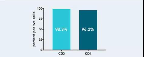 以Fab-TACS細胞分選重力柱分離CD3+及CD4+細胞,圖中為五次獨立實驗的平均分選結(jié)果。Fab-TACS科技能穩(wěn)定的從全血中分選出多量的目標細胞。
