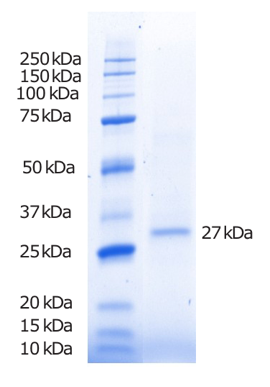STING通過胞漿區(qū)域與CDNs結(jié)合。InvivoGen提供的重組STING蛋白對應(yīng)可溶性的胞漿結(jié)構(gòu)域(aa 137-379)R232突變型,是普遍的人源STING蛋白的同型。這個27kDa的重組蛋白產(chǎn)生自哺乳動物中國倉鼠卵巢細胞系(CHO),通過親和層析純化,不帶標簽,能夠被市面上的商品化人源STING抗體所識別。