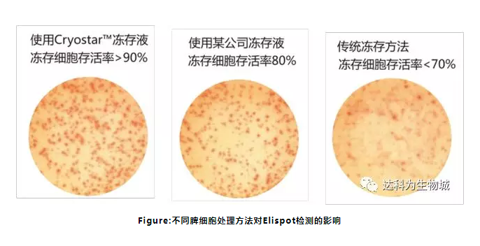 在 ELISPOT 檢測的應(yīng)用中,往往需要用到凍存的淋巴細胞樣品作為檢測細胞。由于 ELISPOT檢測的是細胞的免疫功能,不僅僅需要保持細胞的存活率,而且還要保證細胞的功能不發(fā)生變化。傳統(tǒng)的細胞凍存方法通常是為了保存細胞株,對細胞存活率的要求不高,更沒考慮保持細胞原有的免疫狀態(tài),所以傳統(tǒng)的細胞凍存方法已經(jīng)不能滿足 ELISPOT 檢測的要求。