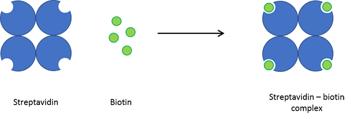 這對(duì)具有高親和力的蛋白常被偶聯(lián)到抗體或蛋白,其中biotin常被偶聯(lián)到抗體或配體,streptavidin偶聯(lián)標(biāo)記物如熒光素、HRP或AP、NanoGold等,如此通過(guò)Biotin—Streptavidin橋連來(lái)可實(shí)現(xiàn)間接檢測(cè)靶標(biāo)。