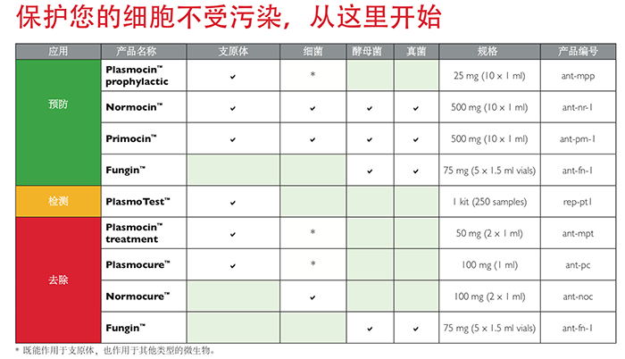 InvivoGen提供多種高效抗污染試劑,幫助您預防、去除和檢測微生物污染。