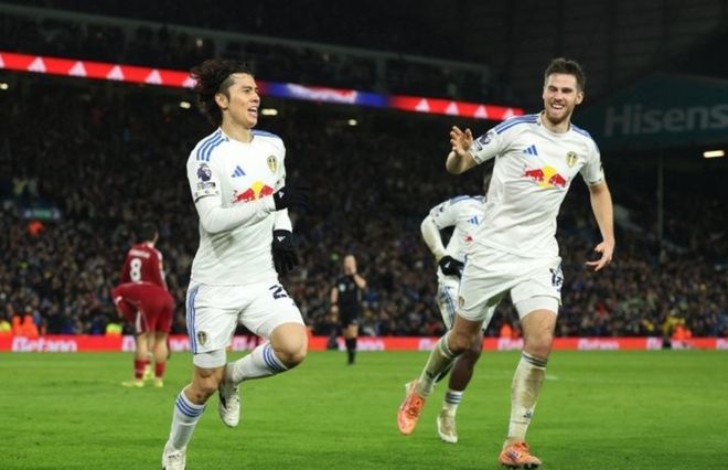同樣是單場(chǎng)打進(jìn)3球,利物浦卻未能收獲3分。這一輪客戰(zhàn)升班馬利茲聯(lián),埃基蒂克下半場(chǎng)第48分鐘和第50分鐘便完成了梅開二度;然而第73分鐘科納特送點(diǎn),勒溫破門吹響反擊號(hào)角;2分鐘后施塔赫內(nèi)切破門,利茲聯(lián)連扳兩城2-2!第80分鐘,麥卡利斯特巧妙一漏,索博斯洛伊得球低射破門,利物浦再次取得領(lǐng)先;然而傷停補(bǔ)時(shí)第6分鐘,田中碧在角球進(jìn)攻亂戰(zhàn)抽射上演絕平好戲,利物浦眼珠子從3分變成了1分。利茲聯(lián)上場(chǎng)擊敗切爾西,這次絕平利物浦,再上一場(chǎng)比賽被曼城絕殺,面對(duì)3家豪門硬是搶到了4分從而逃出了降級(jí)區(qū)。